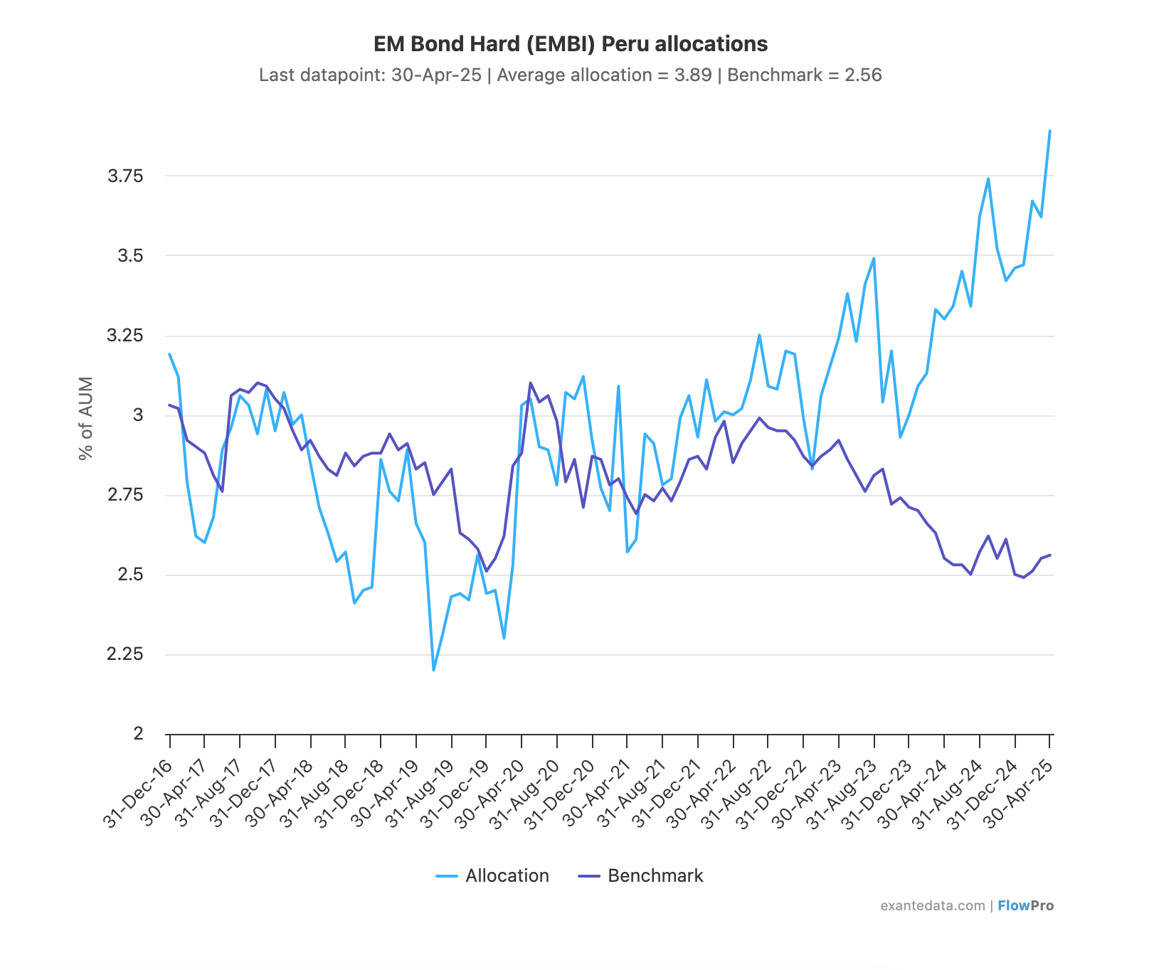 Example of a fund allocations chart using an EM Bond Hard (EMBI) dataset: Country Allocation: Peru