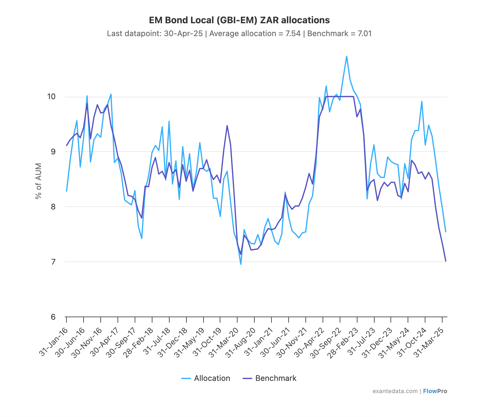 Example of a fund allocations chart using an EM Bond Local (GBI-EM) dataset: Currency Allocation: South African Rand (ZAR)